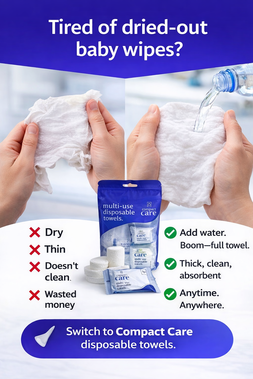Disposable hygiene essentials trusted by travelers, caregivers, and outdoor users for fast cleanup, no shower required.